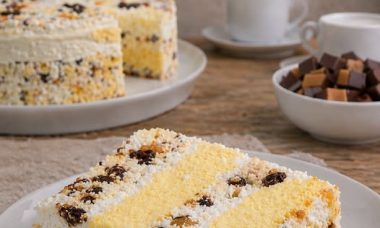 Ova torta je prava kremasta kombinacija keksa, vanila fila, banana i suvog grožđa – jednostavna, …