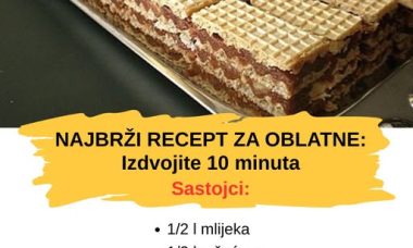 Read MoreNAJBRŽI RECEPT ZA OBLATNE: Izdvojite 10 minuta i uživajte u ukusnom kolaču