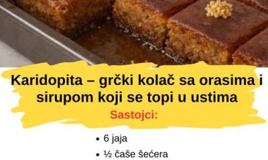 Karidopita je jedan od najpoznatijih tradicionalnih grčkih kolača. Ovaj sočan desert sa orasima, cimetom i karanfilićem …