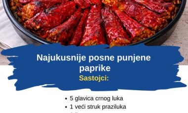 Sastojci: 1 šolja (150-160 g)sol2 tikvice1 luk1 jaje1/2 kašike crvene slatke mlevene paprike1/2 kašike crvene …