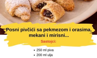 Posne pivske kiflice (pivčići) sa pekmezom – mekane i mirisne!Ako tražite jednostavan i brz posni kolač, …