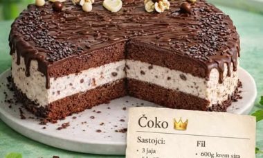 Sastojci: 🔻 Kora: 3 jaja5 kašika šećera3 kašike brašna3 kašike ulja3 kašike kakaa½ kesice praška …