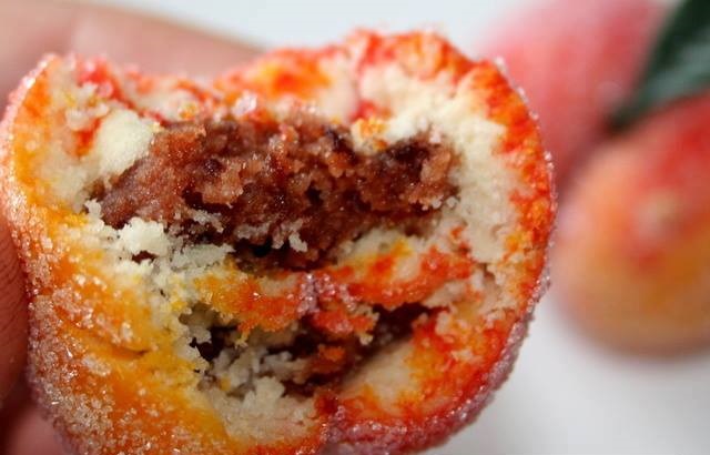 10. Zamocene breskvice naredjati na pleh koji ste postavili kuhinjskim papirom da se malo ocede, uradite 5-6 breskvica, pa ih onda uvaljati u sitniji secer i ostaviti ih na posluzavnik koji ste postavili kuhinjskim papirom.