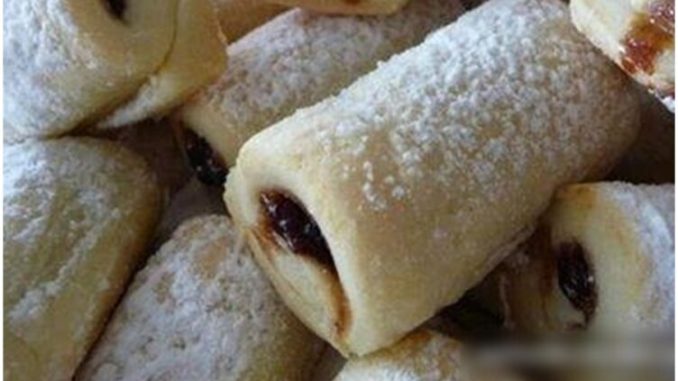 Kad se izvadi iz hladnjaka, ovu količinu podijeliti na dva dijela. Uzeti prvi dio i tanko razvaljati , ali pripaziti da bude više pravokutnik a ne krug. Zatim paralelno na suprotne duže strane mazati pekmez, preklopiti jednom i tanko namazati razmućenim žutanjkom pa preklopiti još nednom i odrezati te malo pomaknuti ili prebaciti sve na jednu stranu. Postupak nastaviti sve dok se ne potroši tijesto. Isto ponoviti i sa drugom polovicom tijesta.