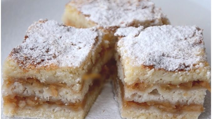 Na lim za pečenje cca 20×30 stavite papir za pečenje. Suhu smjesu podjelite na 3 djela, a jabuke na 2 djela