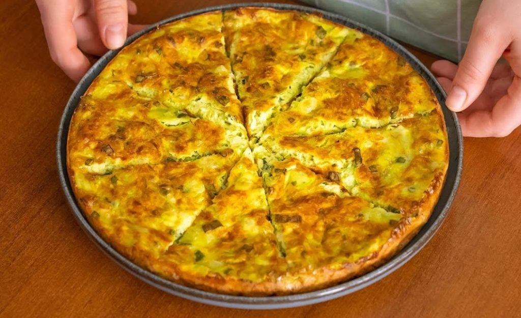 Za pripremu kore, pomiješajte naribane tikvice, 2 jaja, granulirani češnjak te sol i papar po ukusu u velikoj zdjeli za miješanje. U smjesu umiješajte nasjeckani mladi luk i dobro promiješajte.