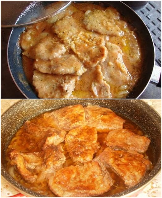 Onda dosoliti ili staviti suvi biljni začin, vratiti šnicle u sos i na tihoj vatri krčkati dok šnicle ne omekšaju