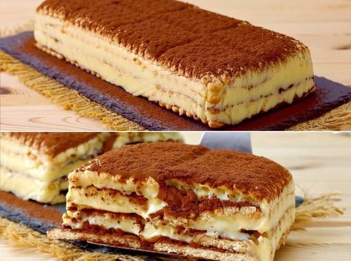 Napravite sloj natopljenog keksa, prekrijte slojem kreme i jednim od prosijanog gorkog kakaa.