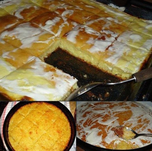 Pomiješajte sve sastojke, izlijte u podmazan pleh i pecite na 450 stupnjeva Fahrenheita ili 230 stupnjeva Celzijusa 30-35 minuta, dok kalup ne porumeni.