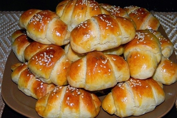 U brašnu pomiješanom sa praškom za pecivo napravite udubljenje, izmrvite kvasac, stavite preko kašikicu šećera i zamijesite tijesto sa mlakim mlijekom, uljem, kiselom pavlakom i solju.