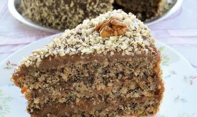 Jaja dobro umutiti sa šećerom da posvetle i budu penasta (desetak minuta). Uliti ulje i vrelu vodu i još malo mutiti. Dodati brašno pomešano sa orasima i praškom za pecivo i sjediniti sa jajima blagim prevrtanjem.