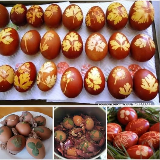 Princip je isti, samo su sastojci drugačiji. Dve kašike alkoholnog sirćeta sipajte u litar vode i stavite lonac na šporet. Kada voda proključa, dodajte prirodnu boju, smanjite temperaturu i ostavite da voda ključa oko pola sata. Kada se boja ohladi, dodajte već skuvana jaja i ostavite da odstoje nekoliko minuta da dobiju boju.