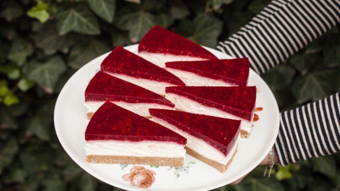 Umutite vrhnje, vaniliju, limunov sok i steviju, umiješajte ih u sir. Uzmite dobijenu kremu i ravnomjerno je rasporedite po podlozi, ostavite da se ohladi u frižideru 1-2 sata. Kada je gotovo, uparite ga sa divnom porcijom džema.