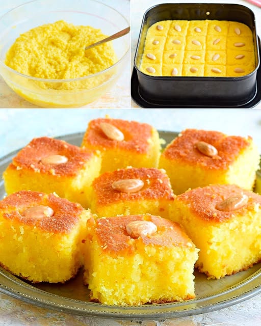 U velikoj posudi, pomešajte semolinu, grubu semolinu, rendani kokos, maslac, jaja, jogurt, praško za pecivo i šećer. Dobro izmešajte sve sastojke dok ne dobijete glatku smesu. - Pečenje: