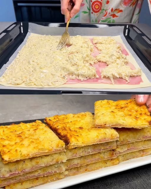 Ovo lisnato tijesto od krumpira je ukusno i jednostavno jelo koje spaja kremasti krumpir, svježi sir i šunku, a sve to zamotano u lisnato tijesto. Savršen za svaki obrok, sigurno će zadovoljiti cijelu obitelj svojom hrskavom vanjskom i mekom unutrašnjošću od sira. Izvrsno za zabave, predjela ili ugodnu obiteljsku večeru.