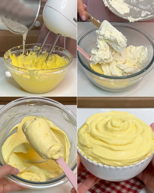 Izmiksajte 6 žumanaca sa 10 kašika šećera i dovedite u gustinu, pomešajte sa vodom i brašnom i prokuvajte u mleku.