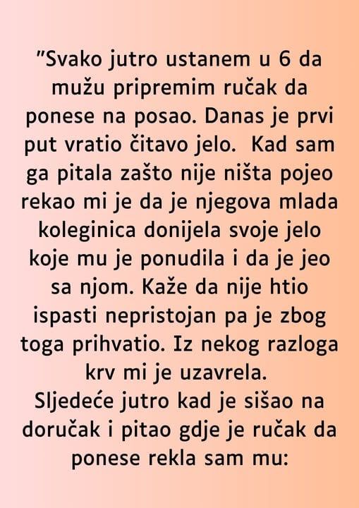 Svakog jutra ustajem u 6 sati kako bih pripremila ručak za muža da ga ponese sa sobom na radno mjesto.
