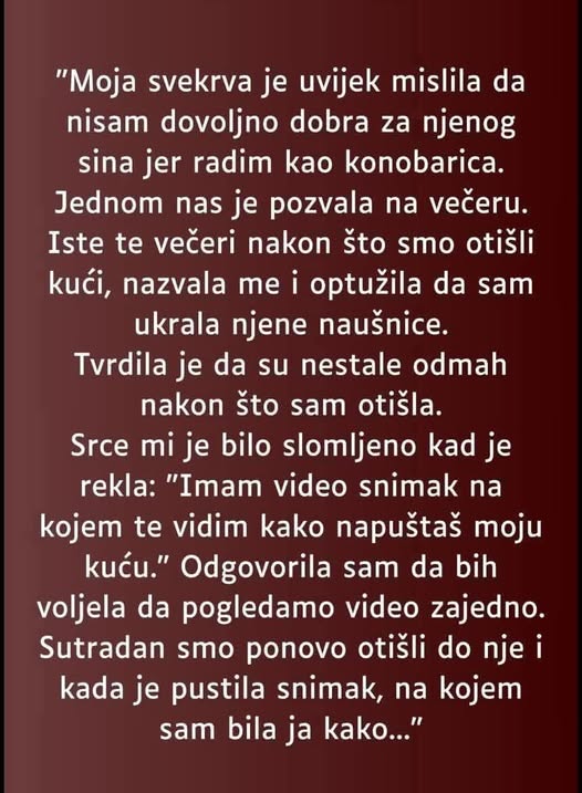 Uvod: Porodični odnosi mogu biti izuzetno kompleksni, posebno kada su opterećeni predrasudama i nerealnim očekivanjima. Jedna žena je doživjela nepravdu od strane svoje svekrve, koja je zbog njenog zanimanja smatrala da nije dovoljno dobra za njenog sina. Njena priča otvara važna pitanja o poštovanju, lojalnosti i snazi pojedinca da se izbori za sebe.