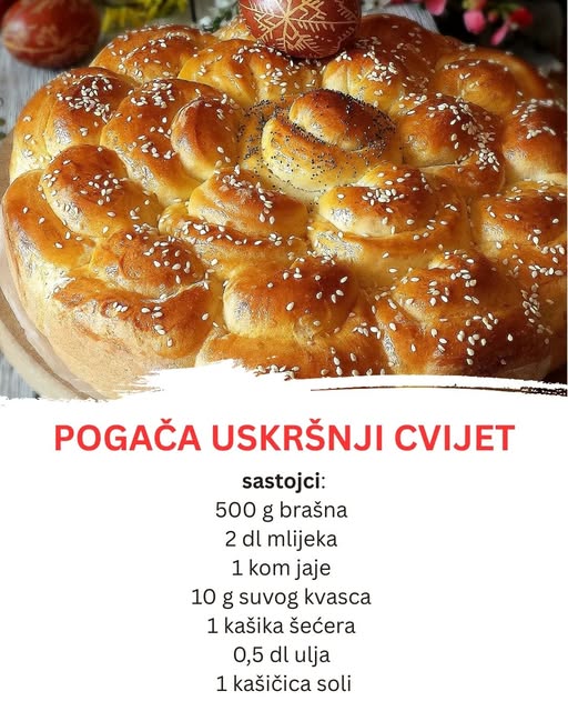 Uskrs je praznik koji u mnogim domaćinstvima ima duboko ukorenjene običaje, a jedan od nezaobilaznih elemenata svake praznične trpeze jeste domaći hleb ili pogača. Uskršnja pogača u obliku cveta ne samo da simbolično dočarava buđenje prirode, već svojim izgledom i mirisom unosi toplinu u dom. Ova pogača nije samo vizuelno privlačna, već i izuzetno ukusna, pa se često nađe u centru pažnje na prazničnoj trpezi.