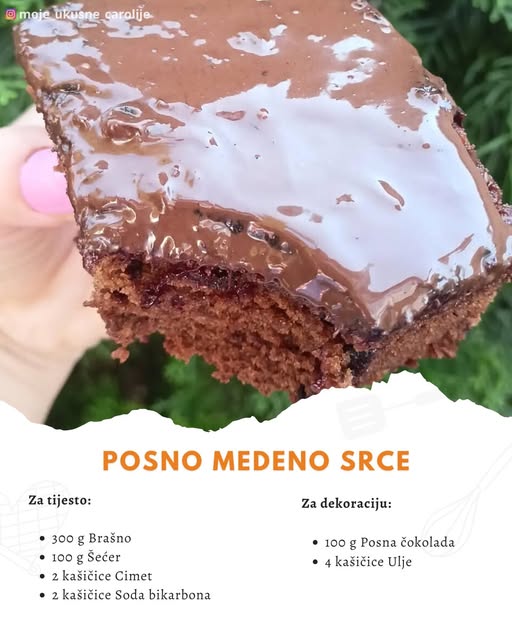 Posno medeno srce je sočan, mekan i aromatičan kolač koji ne sadrži jaja ni mlijeko, što ga čini savršenim za vegane i one koji poste.