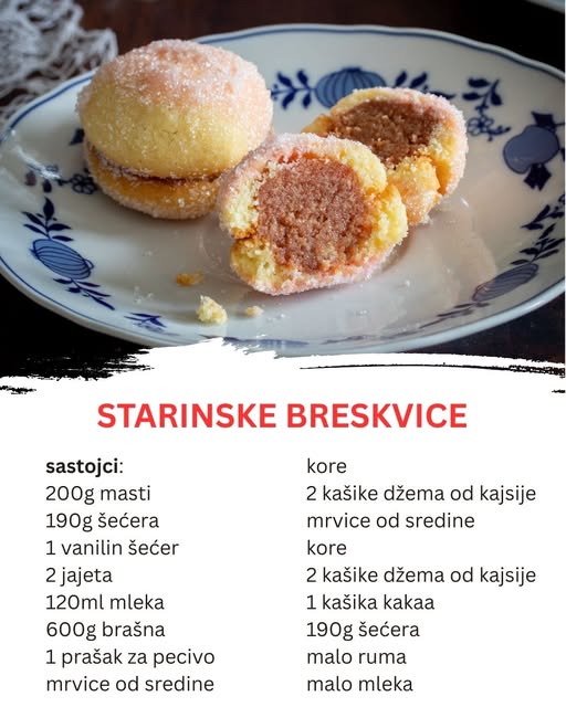Breskvice su jedan onih pravih, starinskih kolača koji je još uvijek vrlo tražen i mnogima omiljeen. Da bi se napravile breskvice treba napraviti veliki broj koraka, ali su oni zapravo jednostavni tako da vam treba samo malo više vremena i strpljenja. Ovaj kolač se pravi na različite načine, često i sa vještačkim bojama, ali pred vama je starinski recept.