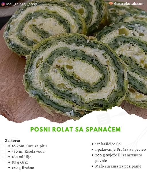 Posni rolat sa spanaćem savršen je izbor za sve koji traže lagan, ukusan i hranjiv obrok bez jaja i mliječnih proizvoda. Ovaj jednostavan recept idealan je za post, vegetarijansku prehranu ili kao hladno predjelo na svečanim stolovima. Sočan, bogat vlaknima i vitaminima, oduševit će i najzahtjevnije nepce.
