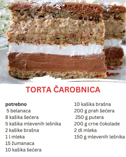 Torta Čarobnica je pravi izbor za sve ljubitelje bogatih, kremastih deserata. Ovaj jednostavan, ali sofisticiran desert spaja nekoliko slojeva bogatih i ukusnih filova, hrskavu koru i neodoljivu glazuru koja čini da svaki zalogaj bude prava čarolija za nepce. Iako je lista sastojaka možda jednostavna, kombinacija tih sastojaka daje tortu koja je savršena za bilo koju priliku, bilo da je reč o proslavi ili porodičnom okupljanju.