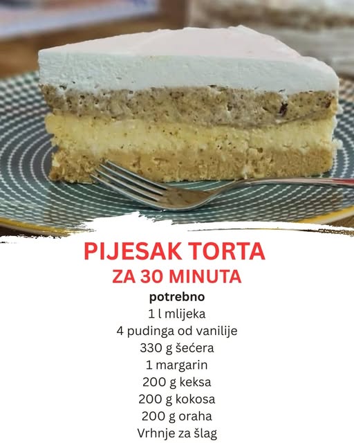 Pijesak torta je desert sastavljen od tri kreme – sve imaju istu osnovu i samo jednu namirnicu po kojoj se razlikuju. Može li jednostavnije?