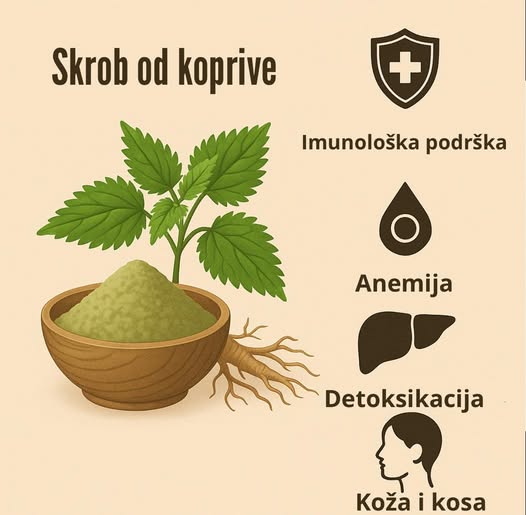 Kopriva je bogata vitaminima A, C, K, željezom i kalcijem, te se koristi u narodnoj medicini za čišćenje krvi i jačanje imuniteta. U kombinaciji s kukuruznim brašnom i mlijekom, skrob od kopriva postaje izvor energije i vitalnosti.