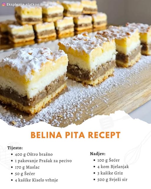 Belina pita je ukusna i sočna tradicionalna slastica koja spaja prhko tijesto, mljevene orahe i kremasti sirni nadjev.