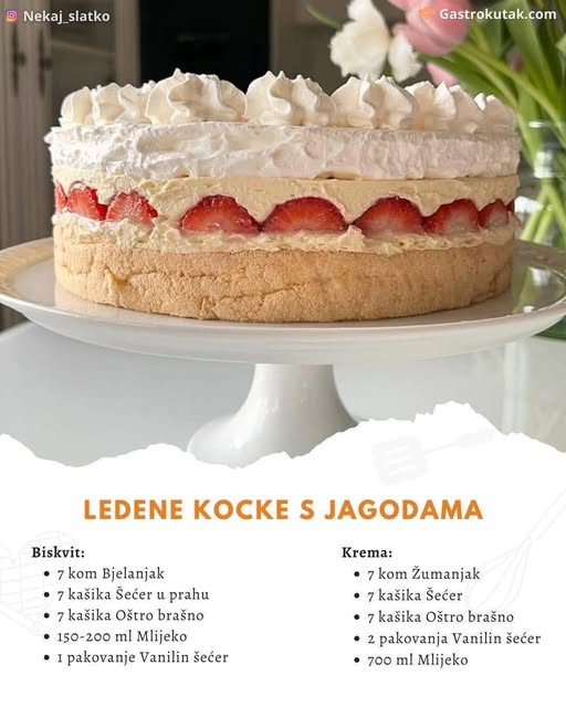 Ledene kocke s jagodama su desert koji svi obožavamo! Ovaj jednostavan, ali neodoljiv kolač spaja bogat biskvit, kremastu kremu i svježe jagode u savršenoj kombinaciji okusa i tekstura. Ako još niste probali ledene kocke, ovaj recept je idealna prilika da uživate u omiljenom desertu. Savršen je za ljetne dane, obiteljske proslave, rođendane ili jednostavno kao osvježenje nakon obroka.