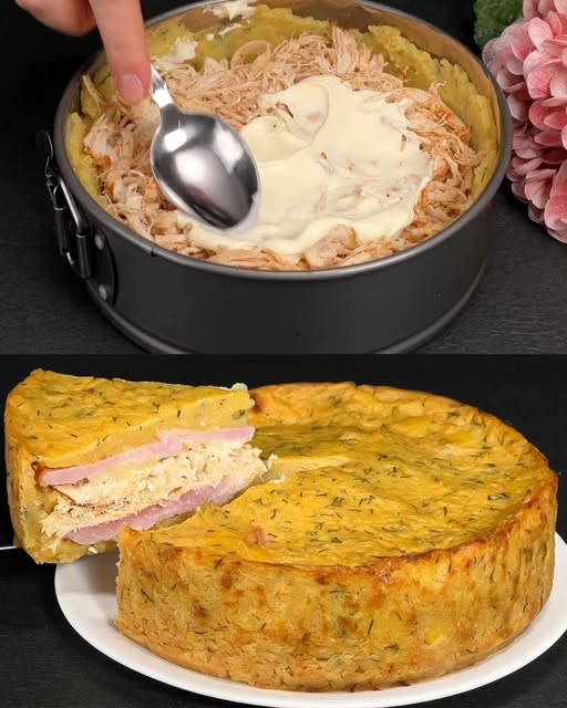 Ovo jelo od pečenog krumpira popraćeno piletinom i šunkom nudi zadovoljavajuće i utješno iskustvo, s mekim krumpirom, slanim pilećim fileom, slanom šunkom i otopljenim sirom mozzarella.
