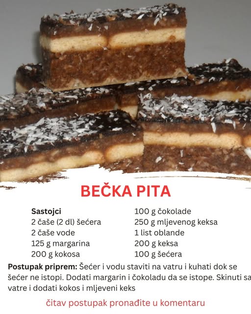Bečka pita nije samo još jedan kolač iz bakinog kuvara – ona je pravi primer kako se uz jednostavne sastojke i malo pažnje može napraviti desert koji ostavlja snažan utisak. Njeni slojevi – mekani, kremasti, čokoladni i hrskavi – osvajaju na prvo probanje i garantuju da se nijedna kocka neće ostaviti na tanjiru.