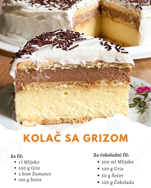 Kolač sa grizom je omiljena slastica koja spaja jednostavnost pripreme i bogatstvo okusa. Ovaj recept pruža sočan biskvit obogaćen kremastim čokoladnim filom i osvježavajućim slojem šlaga, što ga čini savršenim izborom za porodičnim okupljanja ili iznenadne goste.