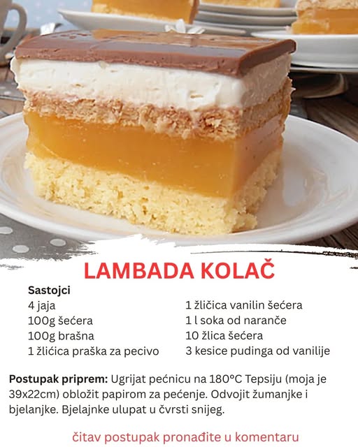 Postoje kolači koji se zaborave već nakon prvog zalogaja. A postoje i oni koji ostaju zauvek urezani u sećanje, ne samo po ukusu, već po čitavoj atmosferi koju stvaraju dok ih pripremamo – mirisi koji se šire kuhinjom, šum kuvanja kreme, hrskavi zvuk keksa pod nožem… “Lambada” je upravo takav kolač.
