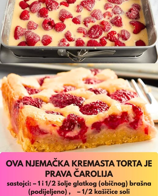 – Ravnomjerno rasporedite maline preko ohlađenog tijesta.