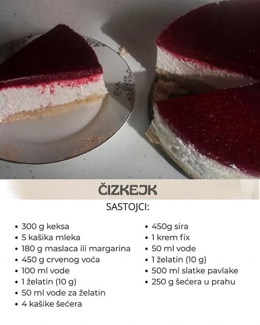 - Čizkejk prekrijte plastičnom folijom i ostavite u frižideru najmanje 4-6 sati, ili najbolje preko noći, da se potpuno stegne.