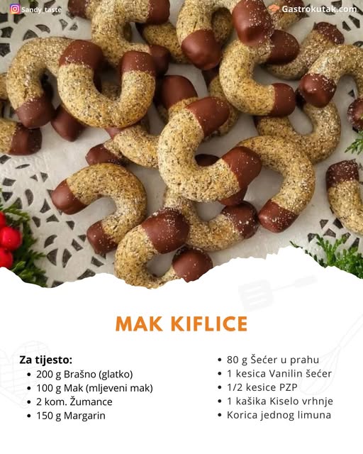 Tražite savršen recept za blagdane? Mak kiflice su neizostavan dio svake blagdanske trpeze! Ovi prhki kolačići spoj su bogatog okusa maka i neodoljive čokolade. Idealni su za Božić, ali i za svaku priliku kada želite oduševiti svoje najmilije. Lako se pripremaju, a njihov miris i okus vraćaju nas u toplinu domaćih praznika.