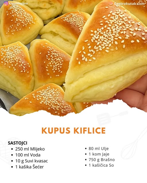 Kupus kiflice su omiljeno pecivo koje je steklo naziv zbog svog karakterističnog izgleda – listaju se poput listova kupusa dok se peku. Iako u sastavu nemaju kupusa, naziv im savršeno odgovara zbog njihove strukture.