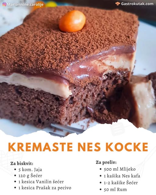 Nes kocke su poznate po svojoj savršenoj kombinaciji kreme, čokoladnog biskvita i blagog okusa kave. U nastavku donosimo korak po korak upute kako napraviti najukusnije Nes kocke s kremom koje će se topiti u ustima. Kora natopljena prelivom od mlijeka, nes kafe i ruma, u kombinaciji s bogatom kremom i čokoladnim ganašom, pravi su izbor za sve prilike – bilo da želite oduševiti goste ili uživati u slatkoj pauzi.