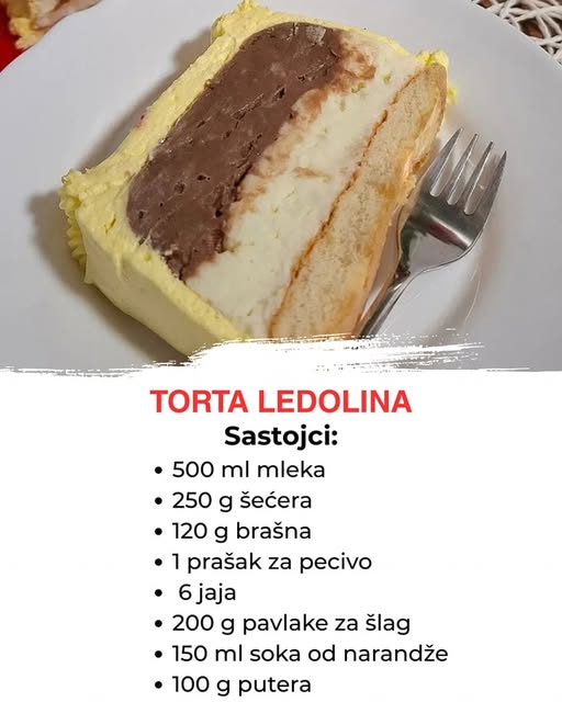 Torta Ledolina je pravi izbor za ljubitelje kremastih i osvežavajućih deserata. Svojim nežnim slojevima, laganom kremom i ukusom koji podseća na letnje dane, osvojit će sve prisutne na svakom okupljanju. Biskvit koji je savršeno sočan i ukusan, u kombinaciji s kremastim slojem od vanile i citrusnim notama, stvoriće nezaboravan doživljaj za vaša čula. Idealna je za sve vrste proslava, ali i za obične nedeljne popodneve uz kafu.