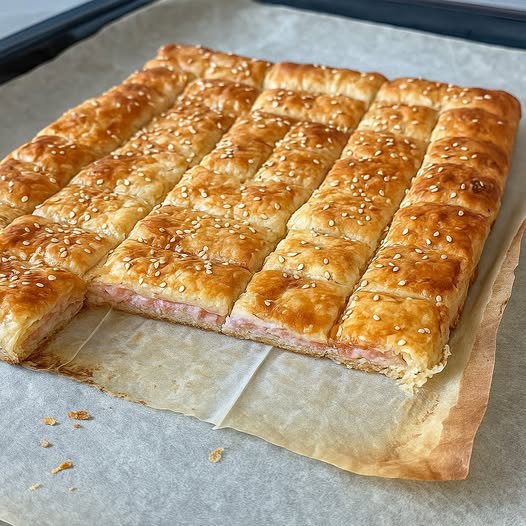 Za pripremu vam je potrebno samo jedno pakovanje lisnatog tijesta i nadjev po želji – sir, šunka, povrće ili čak slatke varijante poput čokolade ili džema. Postupak je jednostavan: na polovinu razvučenog tijesta rasporedite nadev, preklopite, izrežite na kockice, premažite jajetom, pospite susamom i pecite.