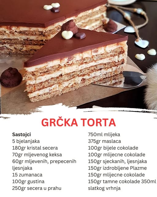 Ona uspeva da objedini nježnost pudinga, hrskavost lješnika, kremastu punoću maslaca i bogatstvo čokolade u savršenoj harmoniji. Ne, ovo nije još jedan trend sa društvenih mreža. Ovo je Grčka torta – klasik domaće kuhinje koji, uprkos imenu, najčešće krasi slavske i svečane trpeze na Balkanu.