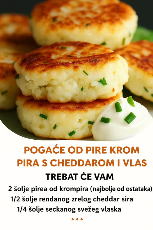 Ovi kolači od pire krompira sa čedar sirom i vlascem su svestrano, utješno jelo koje pretvara običan pire krompir u nešto izvanredno. Sa svojim hrskavim rubovima, sirastim središtem i svježim okusom vlasca, sigurno će biti hit bez obzira da li ih poslužujete za doručak, branč ili večeru. Osim toga, odličan su način da iskoristite ostatke hrane, a da pritom stvari u kuhinji ostanu uzbudljive. Zato uzmite taj pire krompir, pospite malo sira i vlasca i spremite se da uživate u tanjiru zlatne, sirne poslastice!