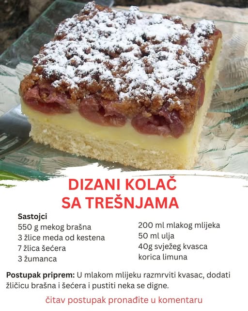 Dizani kolač s trešnjama nije samo još jedan kolač na tanjiru – on je pravo malo čudo ukusa koje spaja mekano tijesto, kremastu sredinu i sočne trešnje, sve uokvireno hrskavim, slatkim posipom. Priprema ovog kolača možda traži nešto više vremena i pažnje, ali nagrada je miris koji ispunjava dom i zadovoljstvo svakog zalogaja.