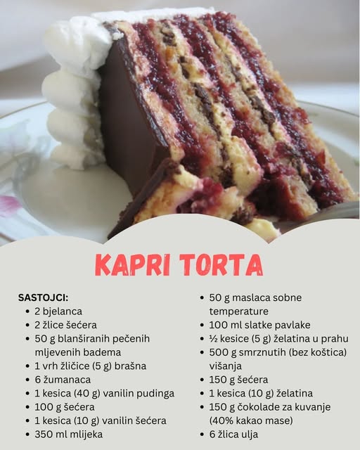 Kada poželimo da na trpezi zasija nešto zaista posebno, a ujedno ne previše komplikovano za pripremu, mnogi se okreću proverenim receptima koji već na prvi zalogaj osvajaju sve prisutne. Jedan od takvih deserata, čije se ime često izgovara s osmehom i sa očekivanjem užitka, jeste Kapri torta – slojevita poslastica koja spaja voćnu svežinu, kremastu mekoću i čokoladnu dubinu u jedinstvenoj celini.