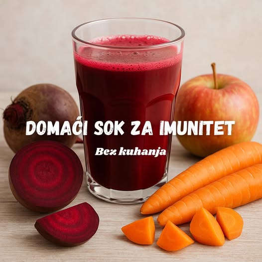 Ovaj domaći sok za imunitet pravi se po receptu naših baka, a njegova tajna je u prirodnim sastojcima koji pomažu organizmu da se brani od bolesti. Cvekla, jabuka, mrkva, limun, med i đumbir – moćna kombinacija koja osnažuje tijelo, poboljšava krvnu sliku i pruža energiju. Najbolje od svega? Sok se pravi bez kuhanja, što znači da svi vitamini i minerali ostaju sačuvani!