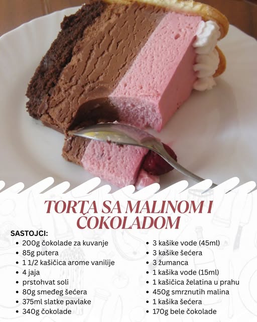 Za ljubitelje čokoladnih i voćnih deserata, torta sa malinama i čokoladom predstavlja savršen spoj tih dvaju okusa. Ova torta se ističe bogatom čokoladnom korom, penastim čokoladnim kremom i osvežavajućim filom od malina i bele čokolade, stvarajući savršen balans između slatkoće čokolade i kiselkastih malina. Ako ste ljubitelj složenih i bogatih tekstura, ova torta će sigurno biti vaš novi omiljeni recept.