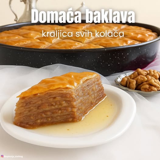 Domaća baklava nije samo desert, već pravo kulinarsko iskustvo. Znate li da su prve verzije baklave nastale još u doba Osmanskog carstva i da se ovaj desert širio regijom kroz vijekove, ostavljajući svoj trag u svakoj lokalnoj kuhinji? Danas se smatra simbolom gostoprimstva, tradicije i pažljivo čuvanih porodičnih recepata. Bilo da pripremate baklavu za praznike ili jednostavno želite da obradujete svoje najmilije, ovaj domaći recept donosi sve ono što jedna prava tradicionalna baklava treba da ima – bogatstvo okusa, miris pečenih oraha i zaljev koji veže sve u savršenu harmoniju.
