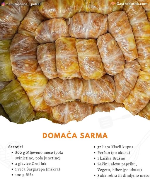 Za pripremu domaće sarme potrebno je pomno odabrati sastojke: mljeveno meso, kiseli kupus, riža i začini. Važno je pridržavati se omjera sastojaka i tehnike uvijanja kako bi sarma bila sočna i aromatična. Dodavanje suhog mesa poput rebara ili slanine dodatno obogaćuje okus i čini jelo još ukusnijim. Uživajte u pripremi domaće sarme i podijelite ovaj recept s porodicom i prijateljima. Neka vas ovaj tradicionalni specijalitet podsjeti na ljepotu zajedničkog obroka i očuvanje kulinarske baštine.